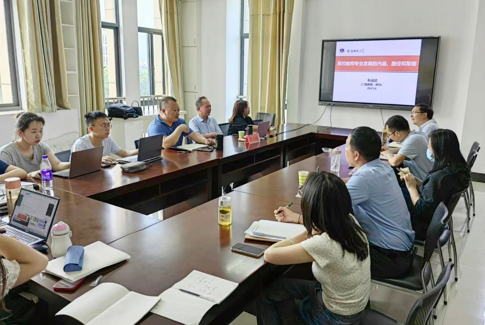 教授、博士生导师阮成武来院开展题为“高校教师专业发展的内涵、路径和策略”的学术交流会,会议由执行院长吴云助主持,学院全体硕士研究生及部分教师现场聆听。