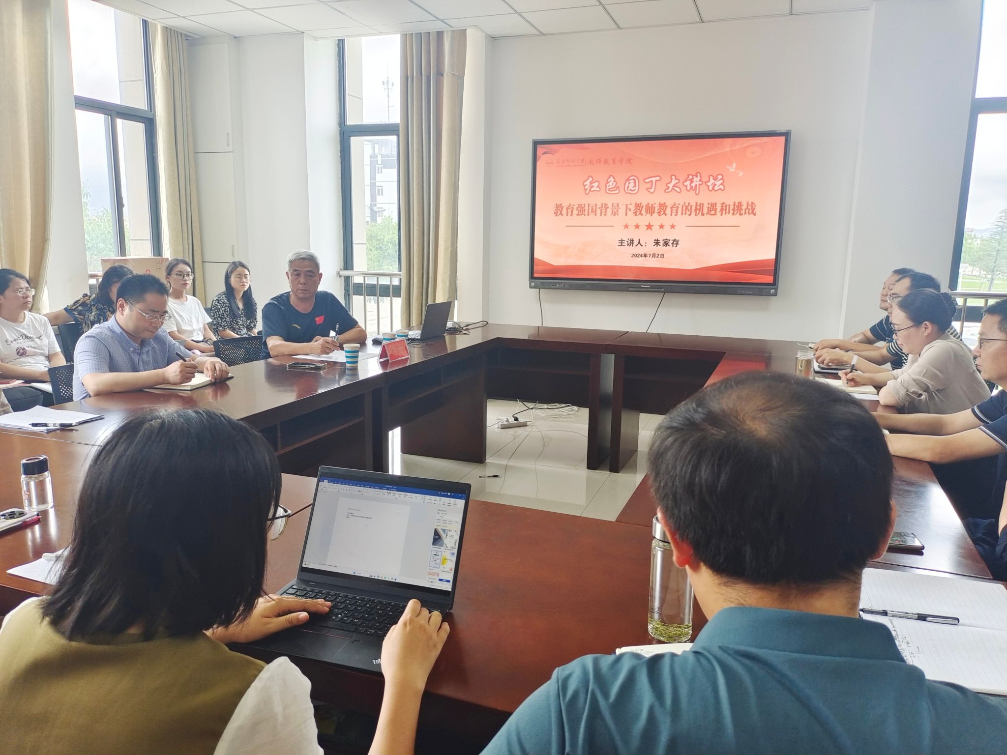 7月2日,安徽师范大学二级教授、博士生导师朱家存教授应邀做客红色园丁大讲坛,做“教育强国背景下教师教育的机遇与挑战”学术讲座。会议由教师教育学院副院长诸园主持,该院领导班子成员、副高级以上及青年博士教师参加会议。