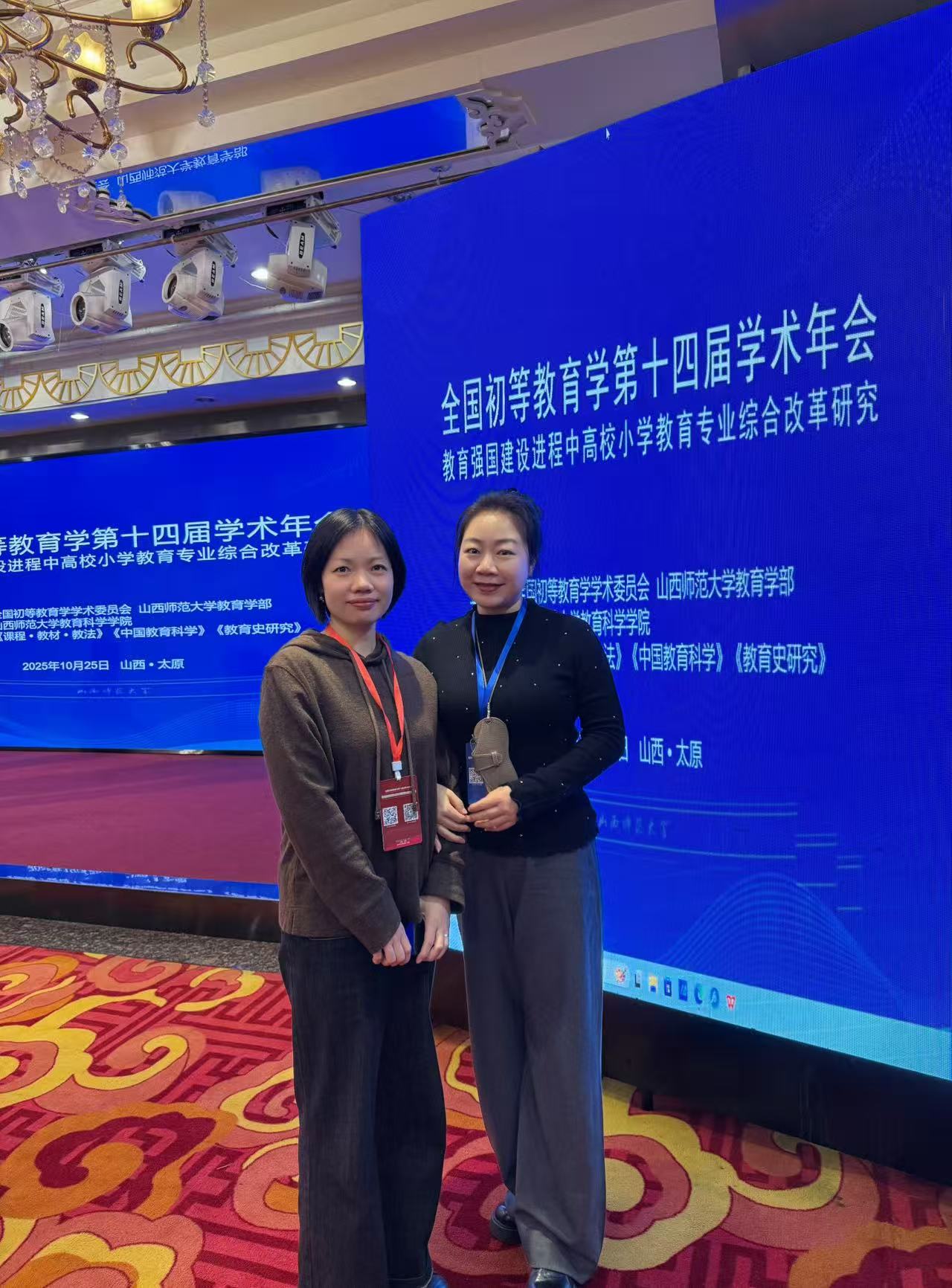 王爱菊教授、胡夏楠博士受邀参加全国初等教育学第十四届学术年会。大会由全国初等教育学学术委员会、山西师范大学教育学部联合主办,会议围绕“教育强国建设进程中高校小学教育专业综合改革研究”主题,聚焦小学教育人才培养改革、课程体系建设、实践教学创新、师范生培养质量保障等关键议题,服务基础教育高质量发展。