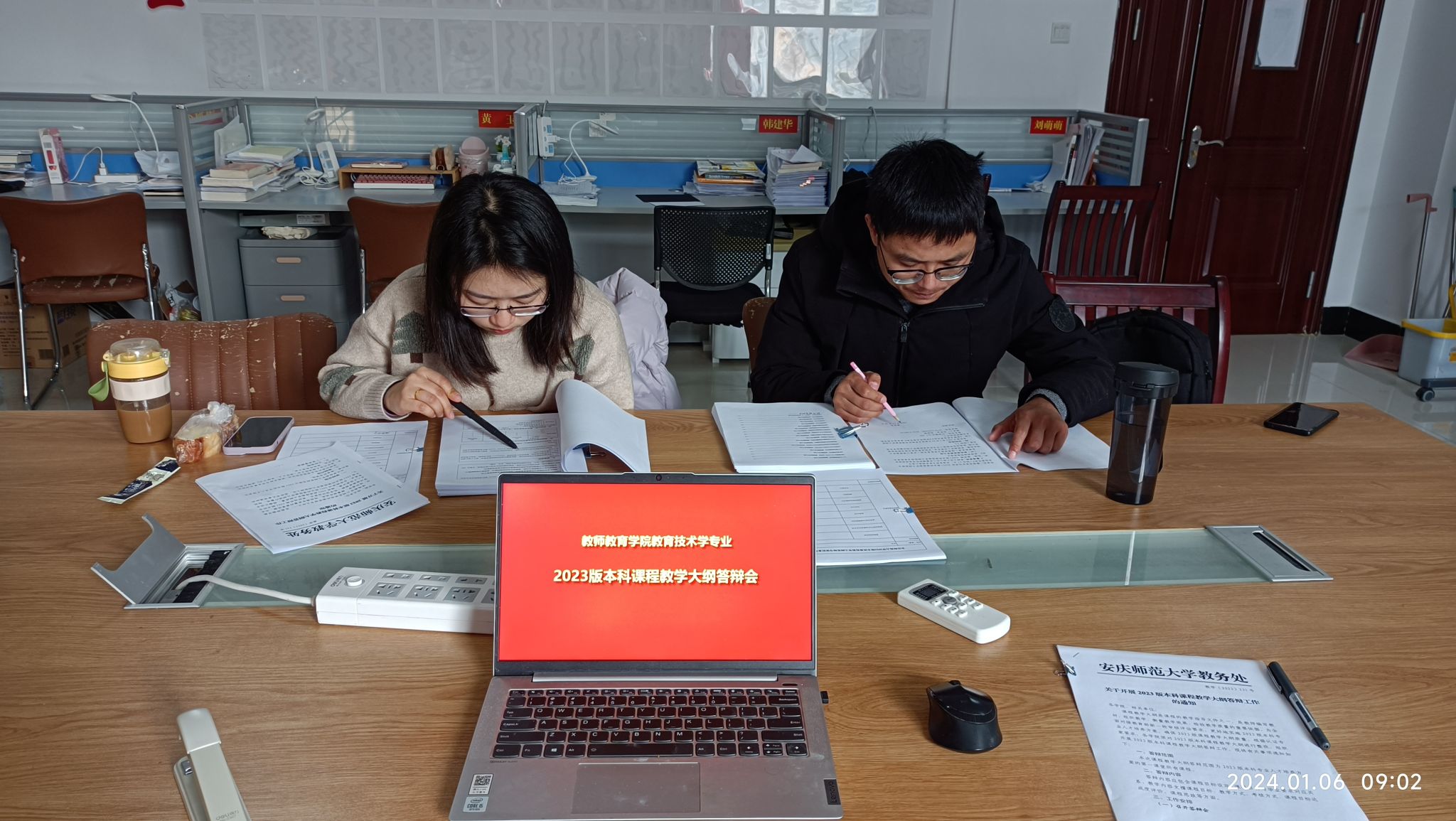 2024年1月6日,教育技术系围绕2023版人才培养方案组织开展课程教学大纲的论证答辩工作。本着产出导向和OBE理念,立足中小学信息技术教师这一人才培养目标,特邀请迎江区信息技术学科带头人、安庆市第十四中丁象,安庆市第一中学唐益柳等信息技术教师担任答辩评委。教育技术学专业全体教师通过线上线下等多种方式参与,活动由系主任韦伟主持。