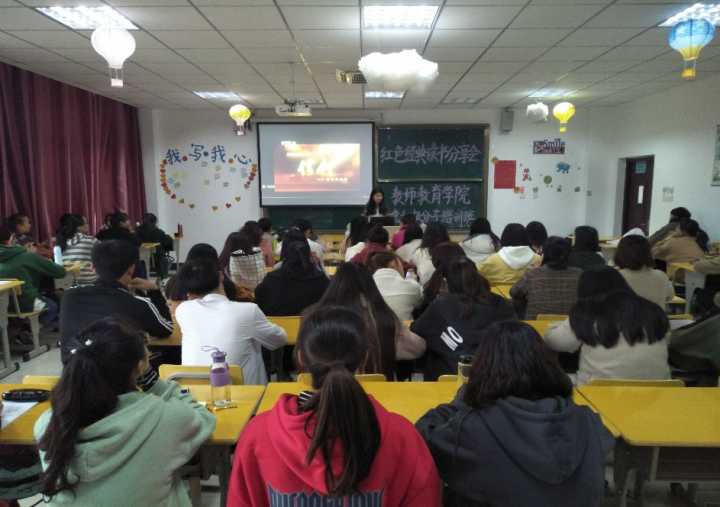 为了引导广大入党积极分子学习领会习近平新时代中国特色社会主义思想和党的十九大精神、重温党章和党史,教师教育学院第58期入党积极分子培训班于11月14日下午在J221教室举办红色经典读书分享会。