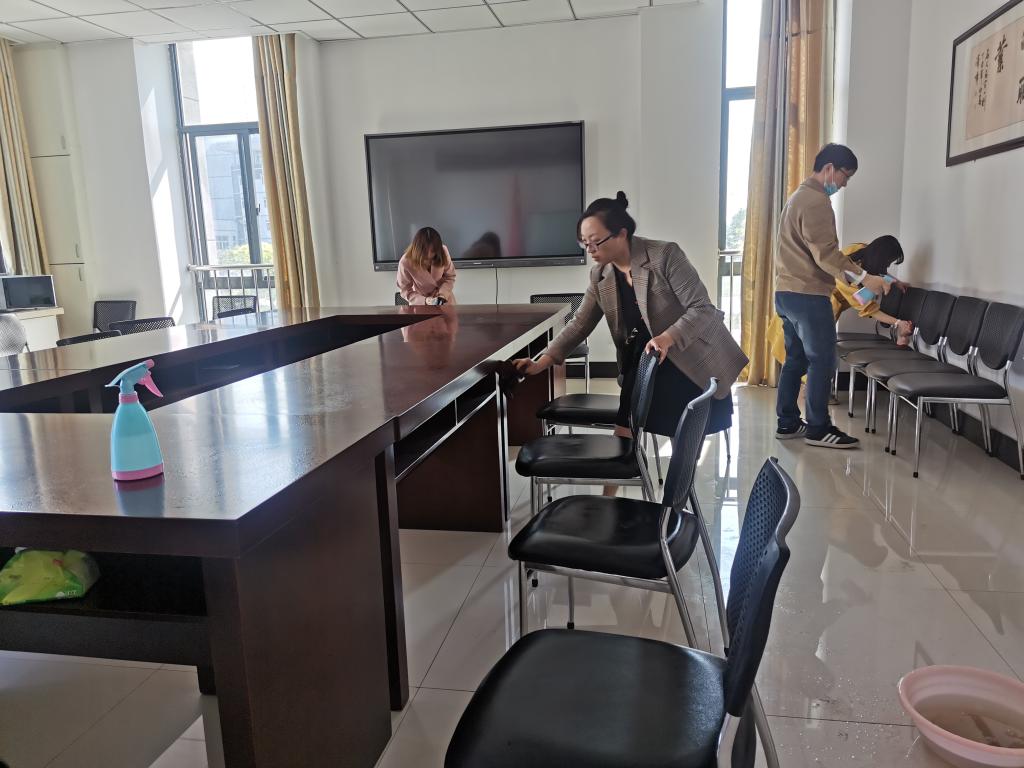 在此之前,学院领导班子制定了学院环境卫生大扫除及消杀工作方案并下发通知,明确了活动时间、内容、区域分工及责任人。早上9:10,全体行政工作人员和机关支部党员集中对学院会议室、教师休息室、图书资料室和各办公室等场所开展了全面细致的卫生清扫和杀菌消毒工作。