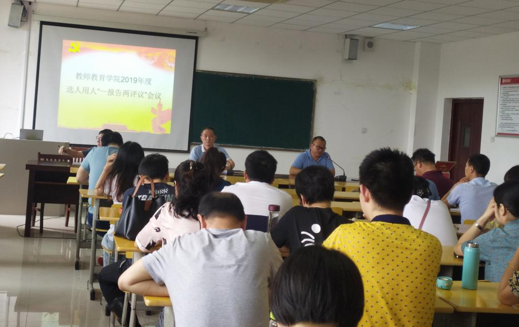 根据学校有关工作要求,进一步推动科级干部选任工作规范化,教师教育学院于7月15日下午在J305召开2019年度选人用人工作专题会议,会议由院党委书记曹长德主持,学院全体教职工参加,校党委组织部有关同志到会指导。