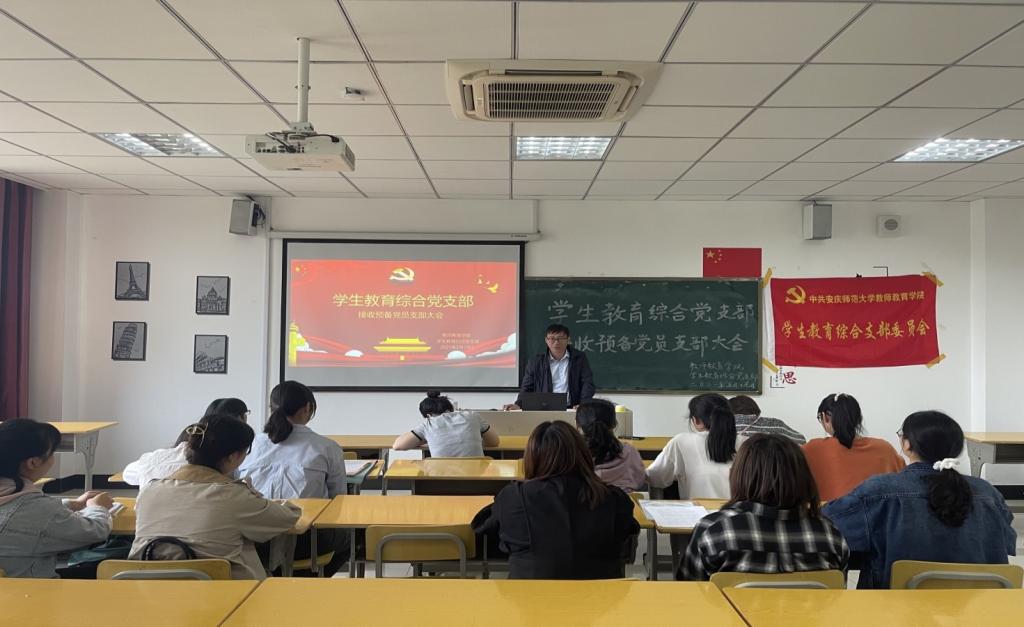 为了提升组织的凝聚力,推进党员接收工作,教师教育学院学生教育综合党支部于2021年5月19日在J217召开预备党员接收大会,学院党委副书记许世平、学生辅导员刘萌萌、程敏芬参加了此次会议。该会由学院学生教育综合党支部书记汪洋洋主持。