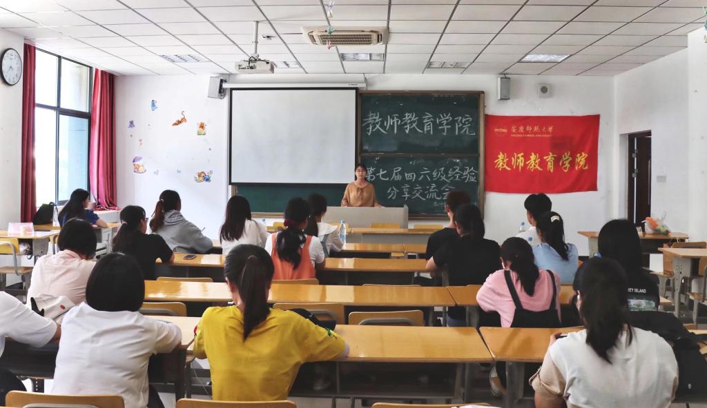 为深入贯彻党史学习教育“我为群众办实事”主题活动,进一步加强学院院风、教风、学风建设,帮助学生树立考试信心,提高学习效率,5月22日下午教师教育学院在J212举办第七届大学生英语四、六级经验分享交流会。学生代表储颖、徐靖萱、王晓飞、李姝婧为备考学生分享经验。