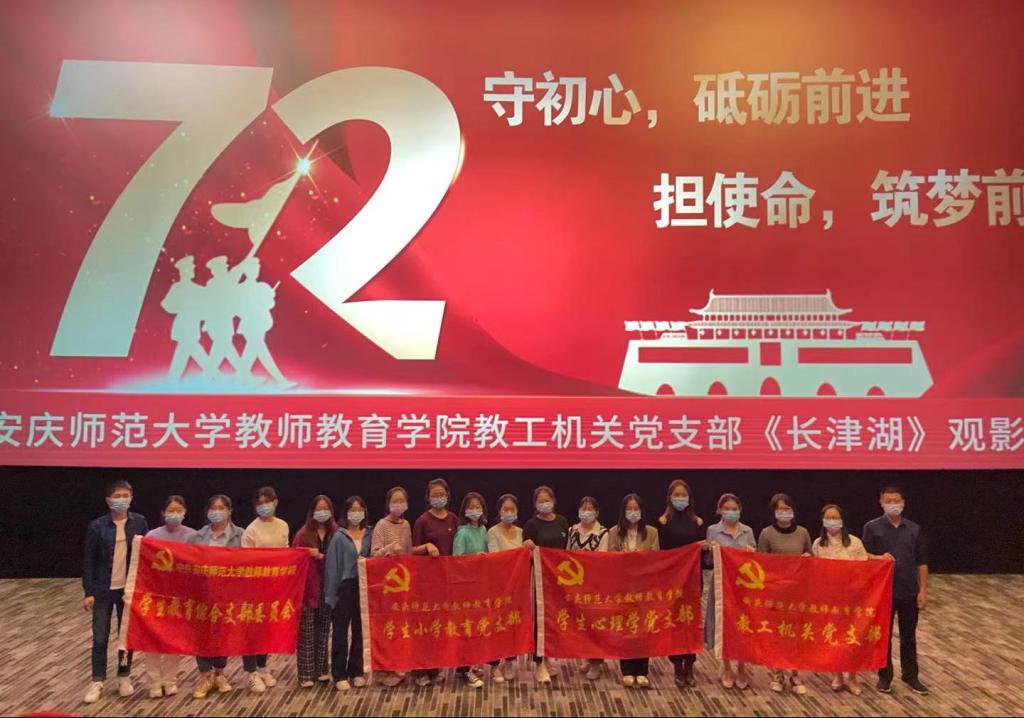 教工机关党支部组织了“守初心,砥砺前进 担使命,筑梦前行”主题观影活动。教工机关党支部11名教师党员,与学生教育综合党支部、学生小学教育党支部、学生心理学党支部等12名学生党员共同观看了《长津湖》影片。