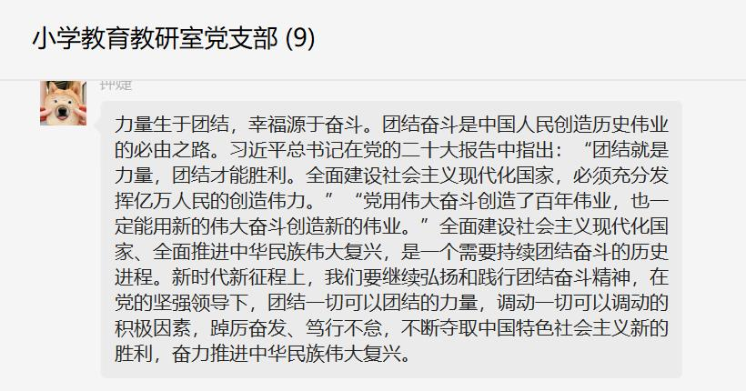 10月21日晚,小学教育教研室党支部召开支部党员大会,组织全体党员集中学习研讨党的二十大报告内容,会议由支部书记诸园主持。
