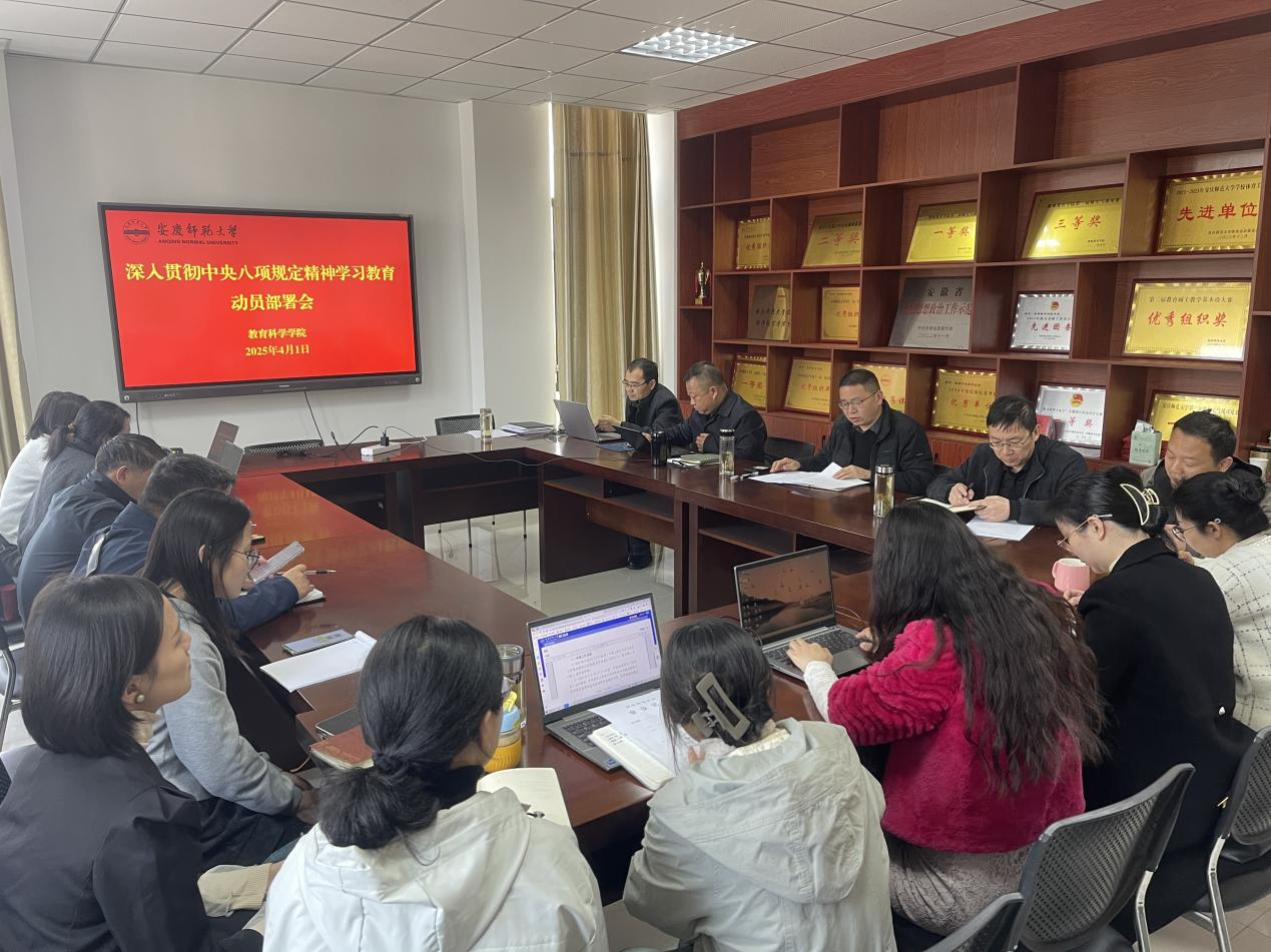 4月1日,学院召开深入贯彻中央八项规定精神学习教育动员部署会,学院全体党委委员、党支部书记、教研室主任、全体行政人员出席会议。会议由学院党委书记何孔蛟主持。
