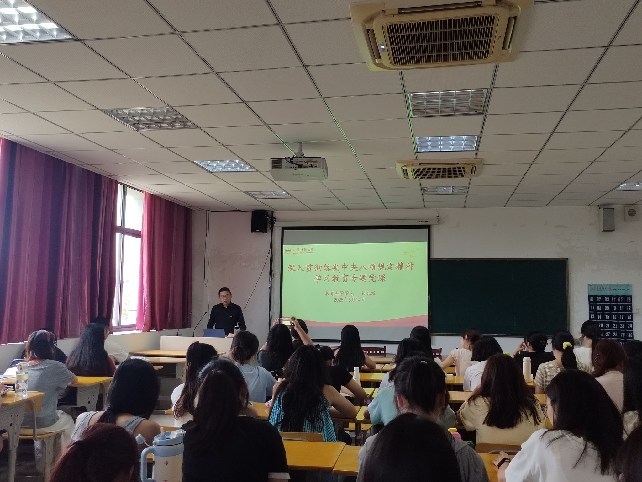 5月14日下午,学院党委书记何孔蛟在J305会议室以《深入贯彻落实中央八项规定精神 以优良的作风奋力答好新时代的青春答卷》为题,为学院第71期入党积极分子讲授深入贯彻中央八项规定精神学习教育专题党课。