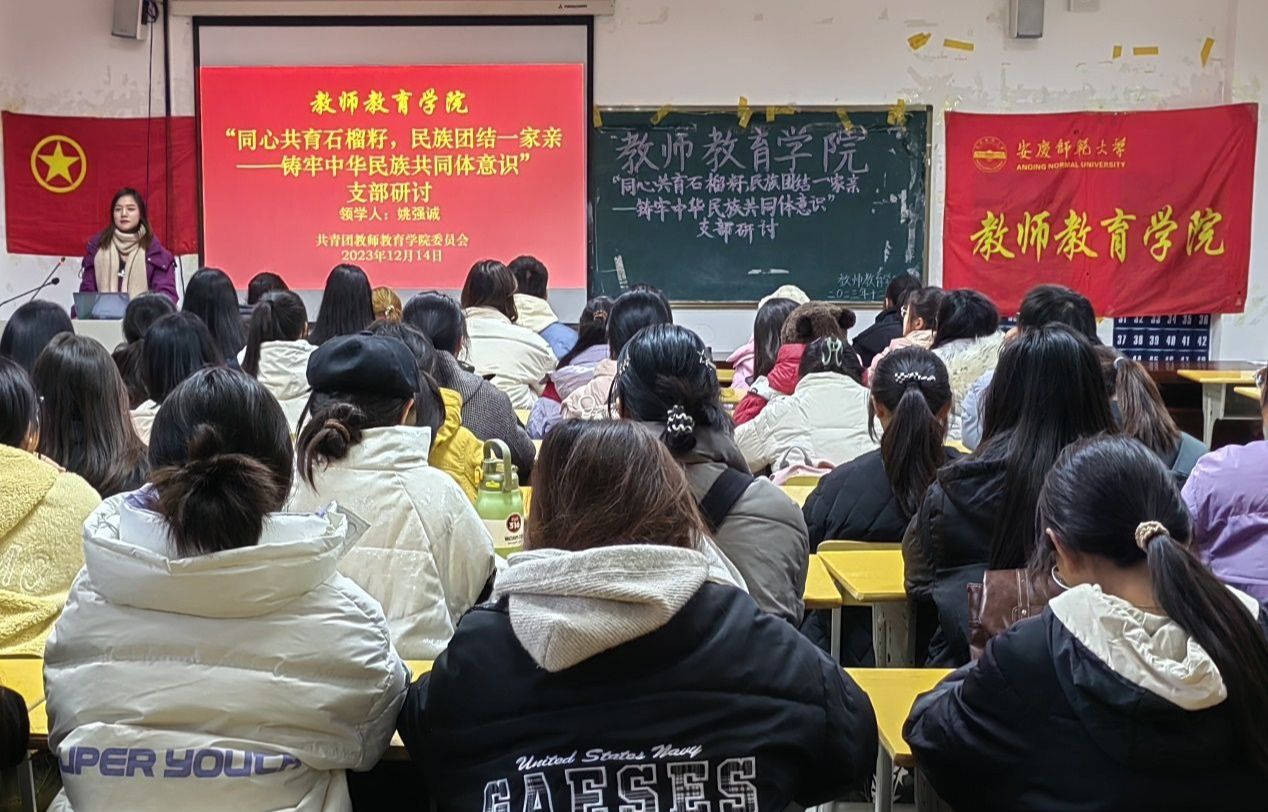 姚强诚领学导学《中华民族共同体意识是民族团结之本》文件精神,中华民族共同体意识是习近平总书记关于民族工作的重大原创性贡献,是马克思主义共同体思想和民族理论中国化的最新成果,是国家统一之基、民族团结之本、精神力量之魂。随后,团委副书记鲍雨蔷、团委实践委员叶伊林分别领学《铸牢中华民族共同体意识》和《共享民族复兴的伟大荣光》文件精神。2022级小学教育五班团支书熊远志、2023级应用心理学1班团支书余苏慧根据文件内容为大家做交流报告:“作为青年,我们须团结向上,共同传递民族团结的薪火,像石榴籽一样紧密相连,同呼吸、共命运、心连心,扎民族团结之根,铸民族振兴之魂。”