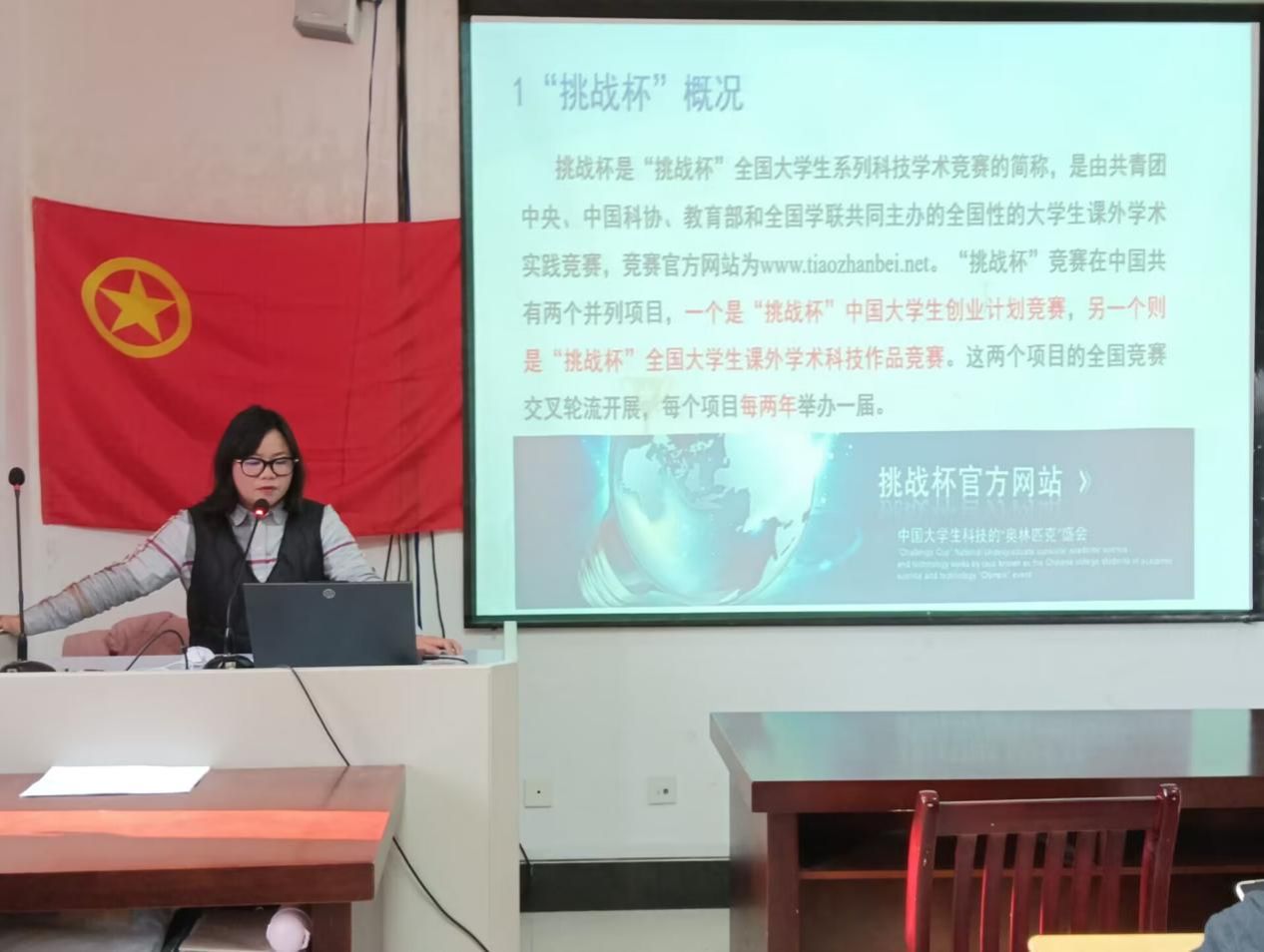 于J305教室举办“挑战杯”创新创业类竞赛指导讲座。本次活动由学院副院长王皓宇主持,副教授、硕士生导师徐颖担任主讲,学院多名教师、百余名教院学子到场参加。