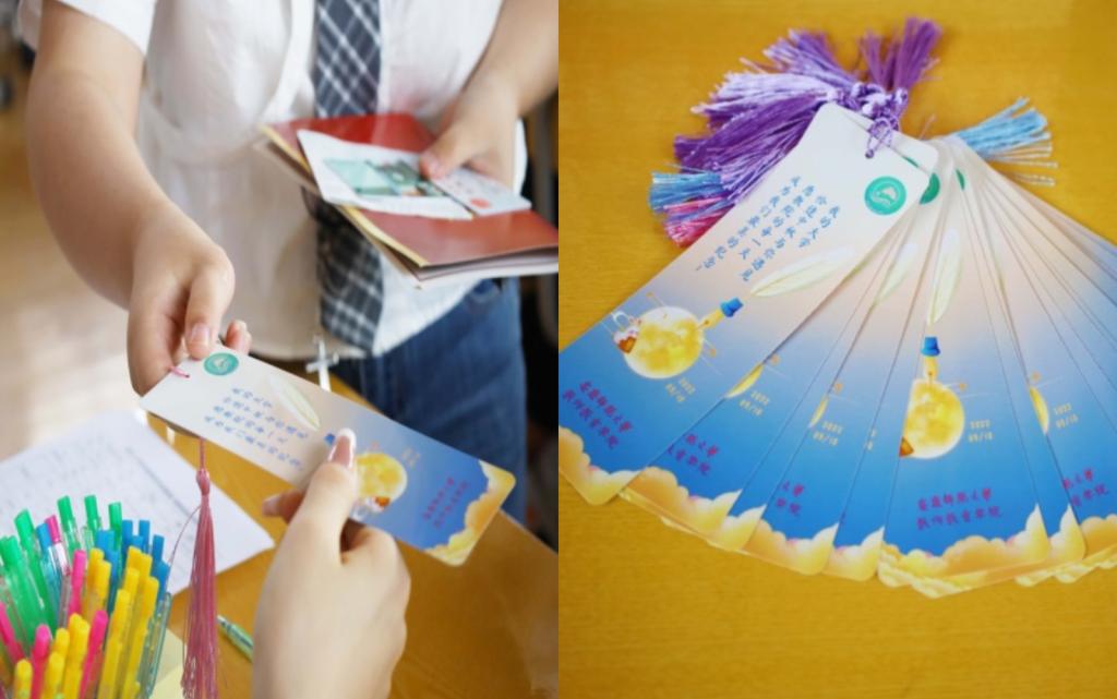 此次迎新,学院为新生们准备了印有学院院徽的及教师节、中秋节元素的“节日限定”书签,书签背面印有98色花堂简介