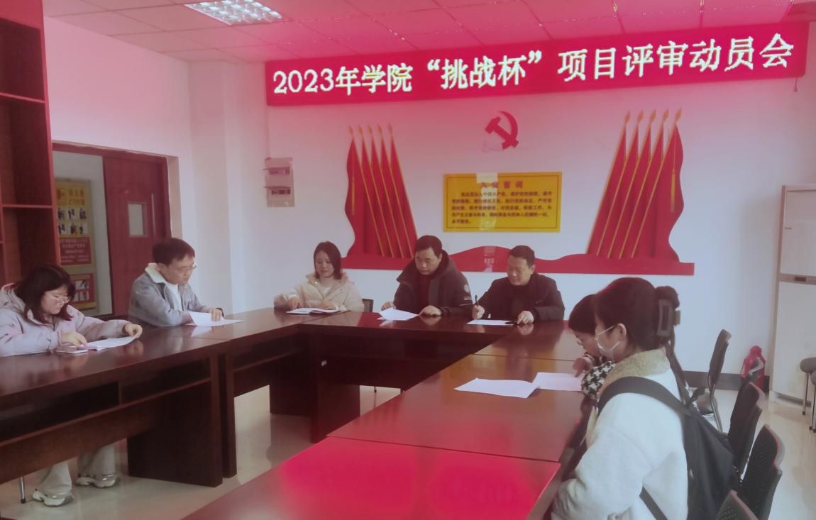 于J202会议室组织开展第十届“挑战杯”大学生课外学术科技作品评审动员会,院分管副院长王皓宇、陈效飞,校团委社团部方泽宇等多位老师参与讨论评审,会议由姚强诚主持。