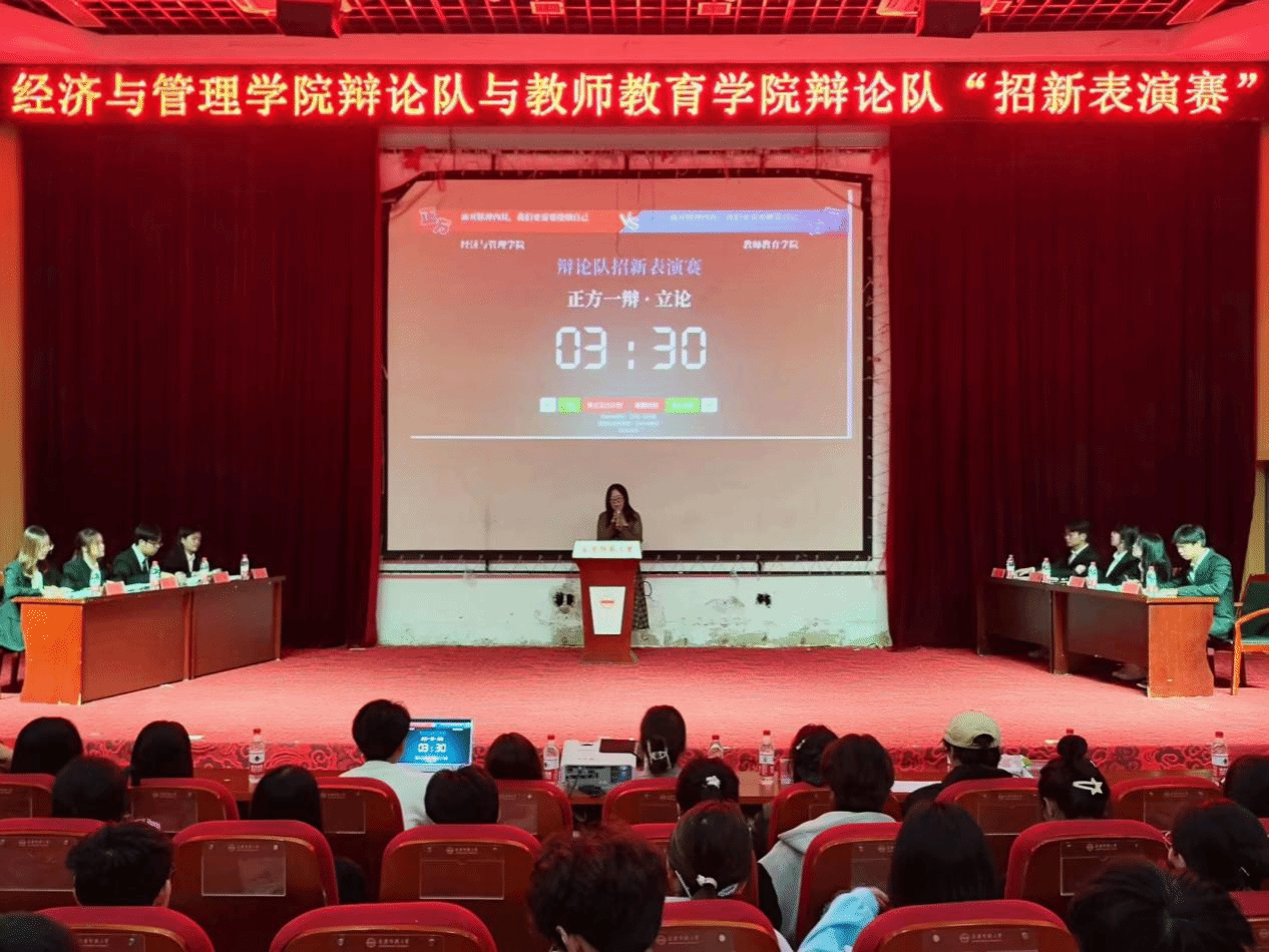 与经济与管理学院辩论队联合在图书馆东报告厅开展“招新表演赛”,学院辩论队领队俞燕、徐姜明、赵理想、陆文慧等参加本次活动。