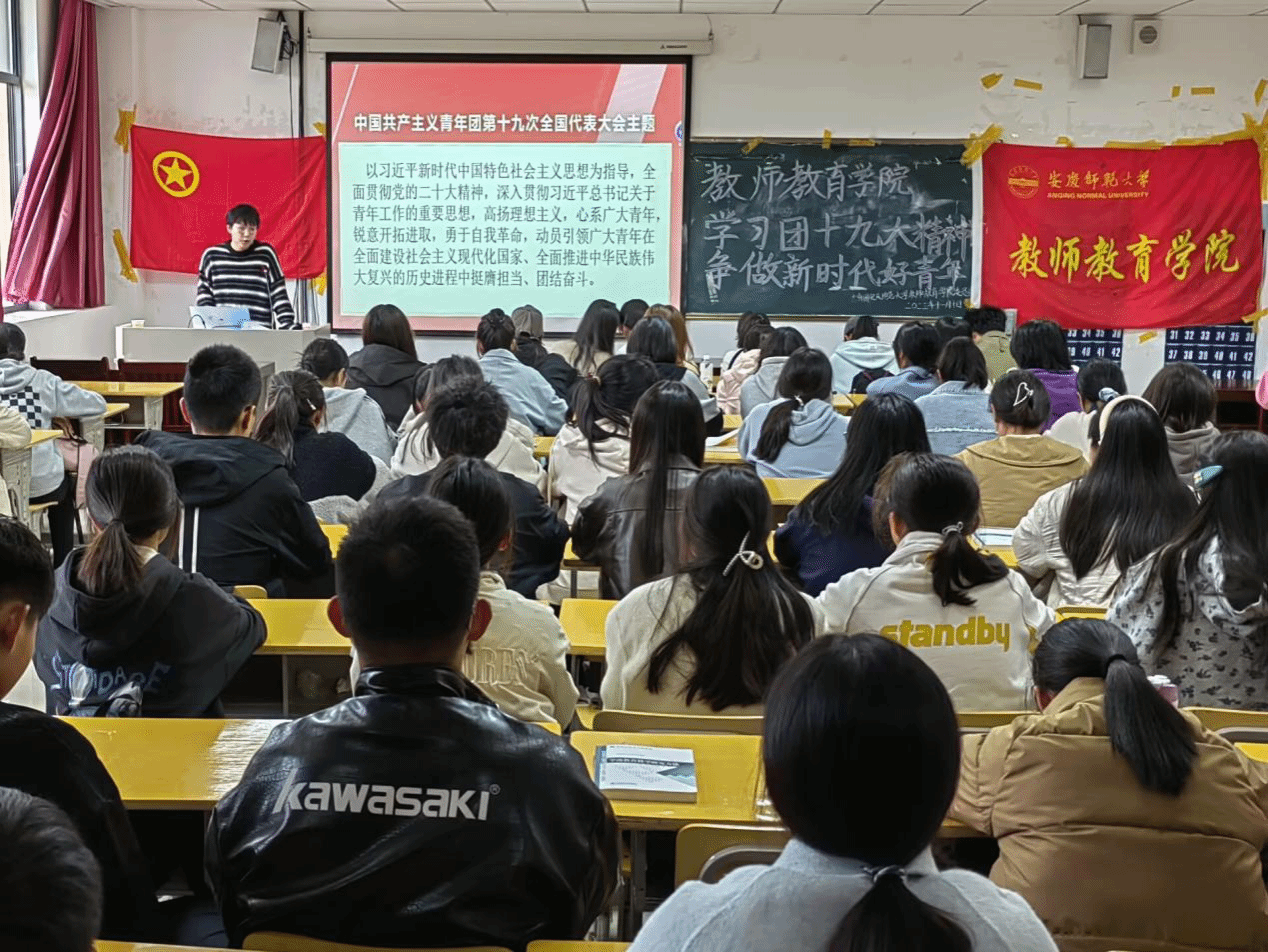 活动在齐唱团歌中拉开序幕。姚强诚组织观看了中国式现代化的相关视频。她围绕“新成果”、“新思想”、“新成就”、“新方略”四个方面展开具体阐述,带领同学们学习十九大报告的核心内容。她要求青年团员把思想和行动统一到团十九大精神上来,高举中国特色社会主义伟大旗帜,坚定道路自信、理论自信、制度自信、文化自信,全面建设社会主义现代化国家,为强国建设挺膺担当,继续创造新的青春业绩。