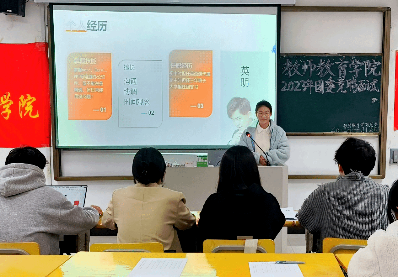 学子昂扬向上的精神面貌。谈及感受,23级学前教育专业汪南说道:“团委学生干部是团委工作的排头兵和领头羊,如果我当选,我将以良好的精神风貌,积极参与院团委工作,为建设美丽校园贡献力量。”