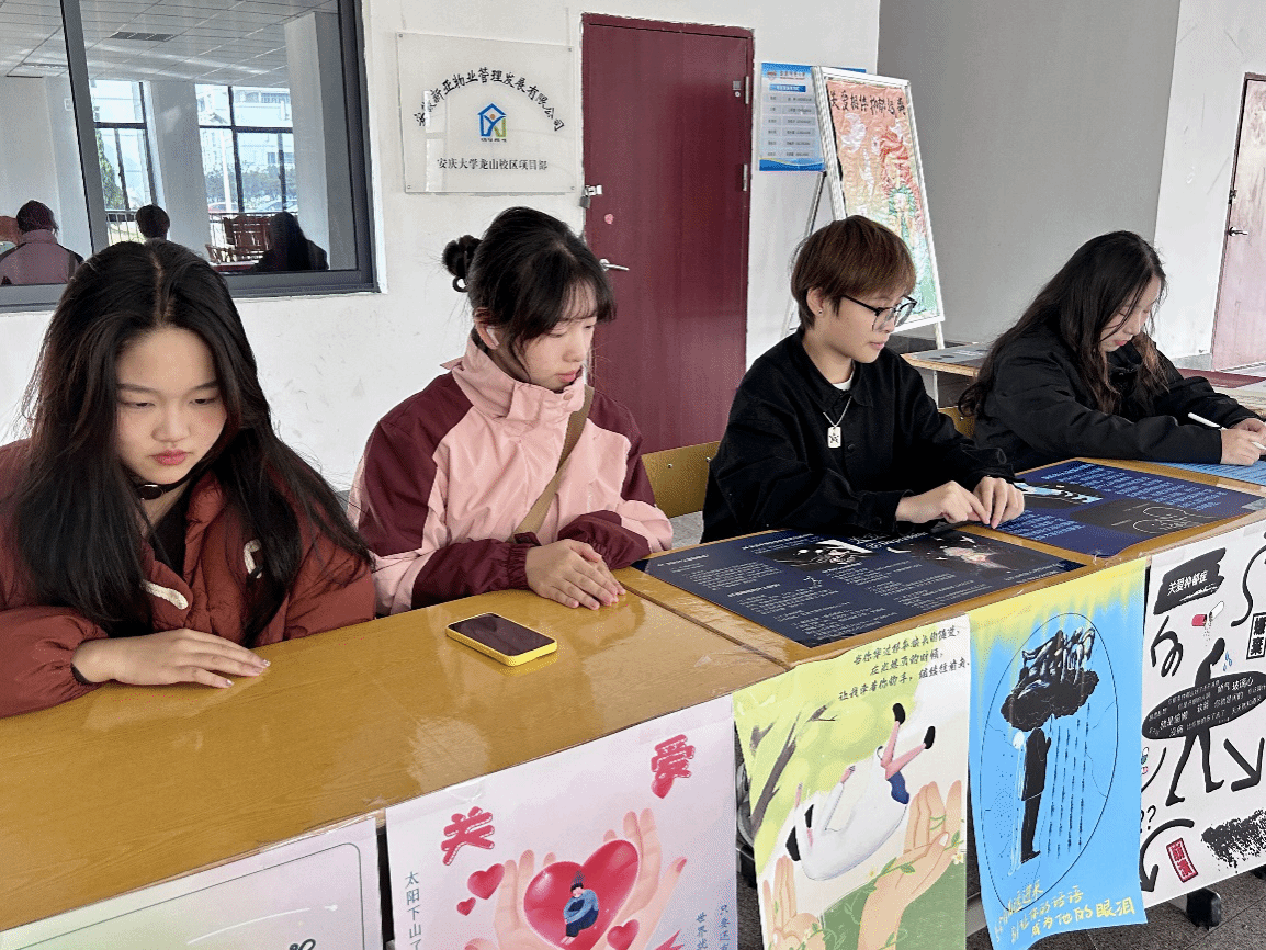 此次活动共分为两个环节,通过展板来普及心理健康相关知识,让学生在习得知识的同时收获快乐,增加对抑郁情绪的了解。在“远离抑郁”环节,同学们将个人名字或祝福签在活动主题横幅上,希望把关爱抑郁症的理念传递给大家,正确对待抑郁情绪。“关爱相伴”环节中,同学们敞开心扉,在便签上写下心中烦恼,倾诉个人心理压力,一张张充满温情的纸片汇聚在展板上,传递着温暖与希望。