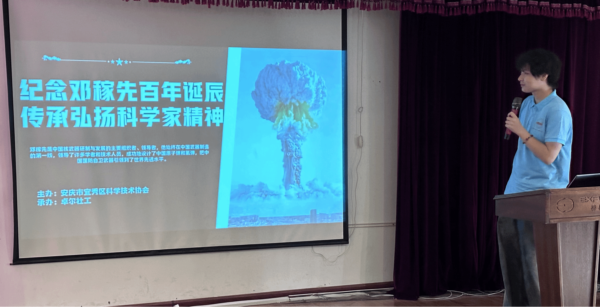 “以劳润心,怀爱护蕾”教育关爱实践团成员为参加暑期托管班的40余名学生进行了主题为“传承稼先精神,点亮爱国红星”的邓稼先事迹宣讲课程。