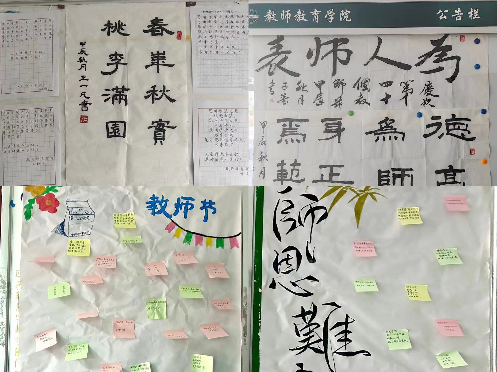 执笔传情,感念恩情。学院学生会代表全体同学为学院老师精心布置了祝福展板,来往学生将真情汇入所写文字,将心意融入贺卡装饰,向老师们表达诚挚敬意与衷心祝福。一封封情真意切的贺卡,一声声发自肺腑的感谢,字里行间流露出对老师的感激之情。老师们被惊喜、感动、温暖包围,感受着教师这份职业带来的特殊幸福。