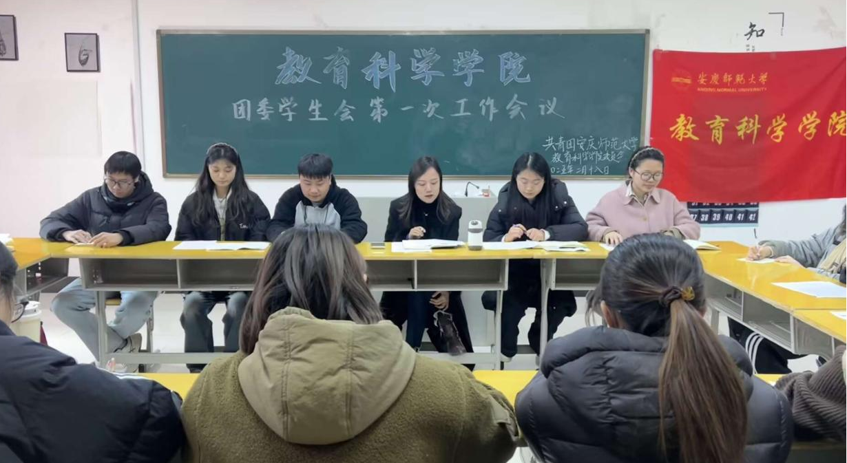 于J217教室召开新学期团学工作会议。院团委副书记姚强诚主持,学院全体学生干部到场参会。