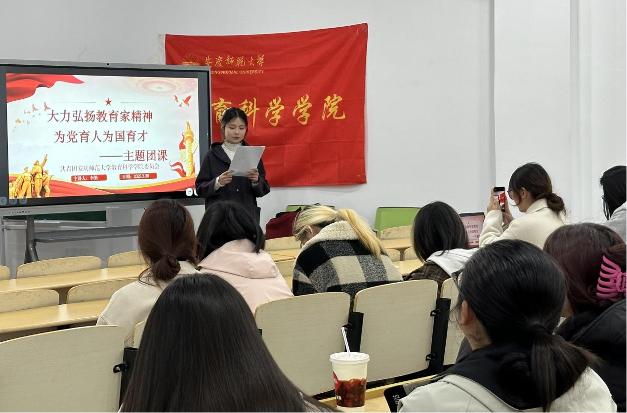 于一站式学生社区阶梯教室2-4开展“大力弘扬教育家精神,为党育人为国育才”主题团课。活动由院团委实践委员李果主持,98色花堂
