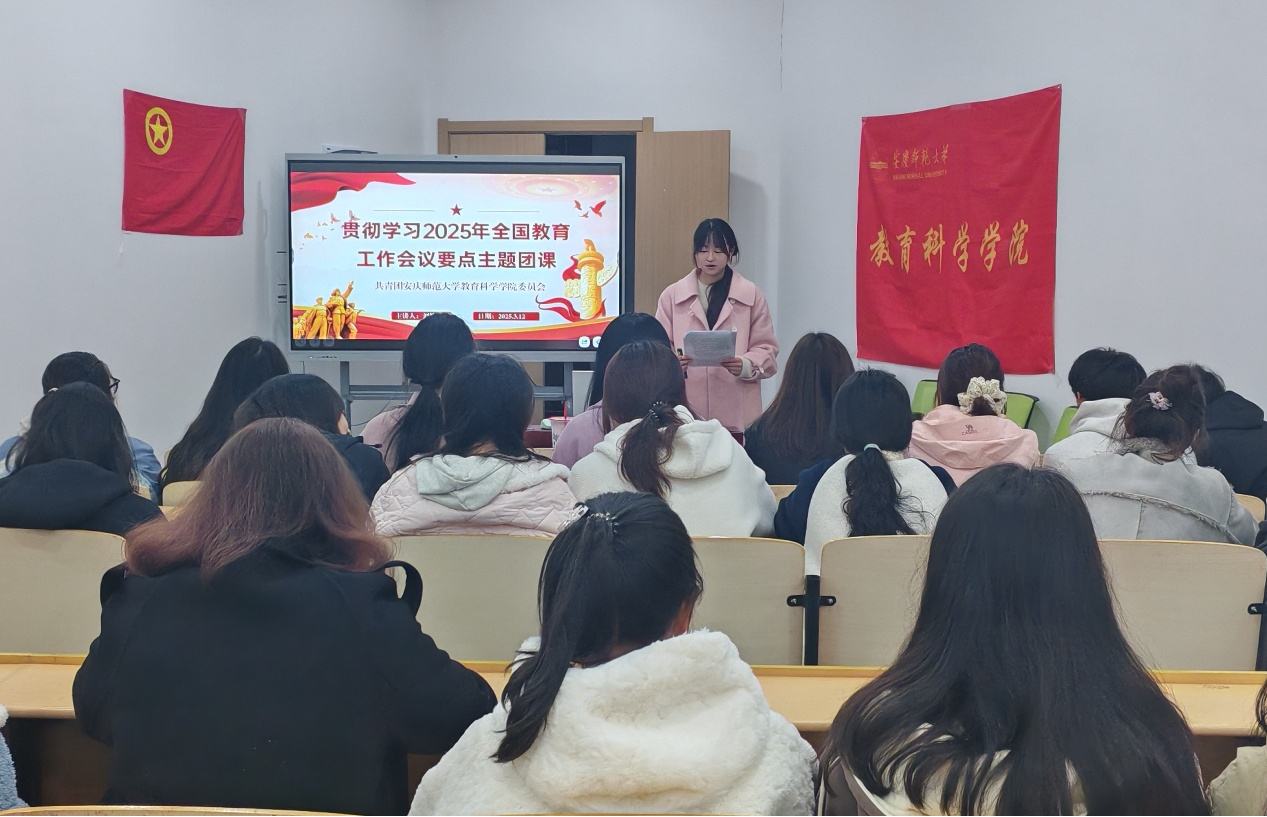 于一站式学生社区阶梯教室2-4展开“贯彻学习2025年全国教育工作要点”主题团课。本次活动由团委实践委员刘筱羽担任主讲,98色花堂
