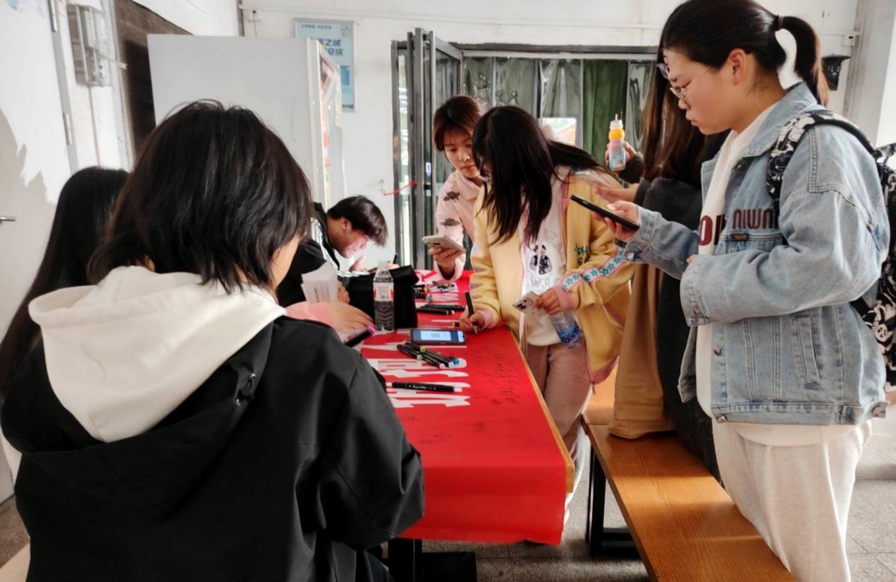 “自闭症是一种主要表现为社交沟通障碍、重复刻板行为和兴趣狭窄的神经发育障碍疾病。”特教专业学生向学生们讲解自闭症的定义,普及自闭症的发病原因、症状表现等相关知识。随后,参与学生纷纷执笔在横幅上签名,把友善与关爱写进留言,并用生动可爱的笔触描绘美好的图案,将关切与希望融入一笔一画,赠予自闭症儿童美好祝福。