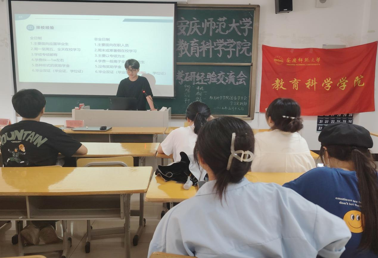 于J106举办考研经验交流会。活动由学生会学习实践部干事李艳飞主持,刘晓艳、汤德红、吴与格,丁子芮等考研录取学生担任主讲,98色花堂