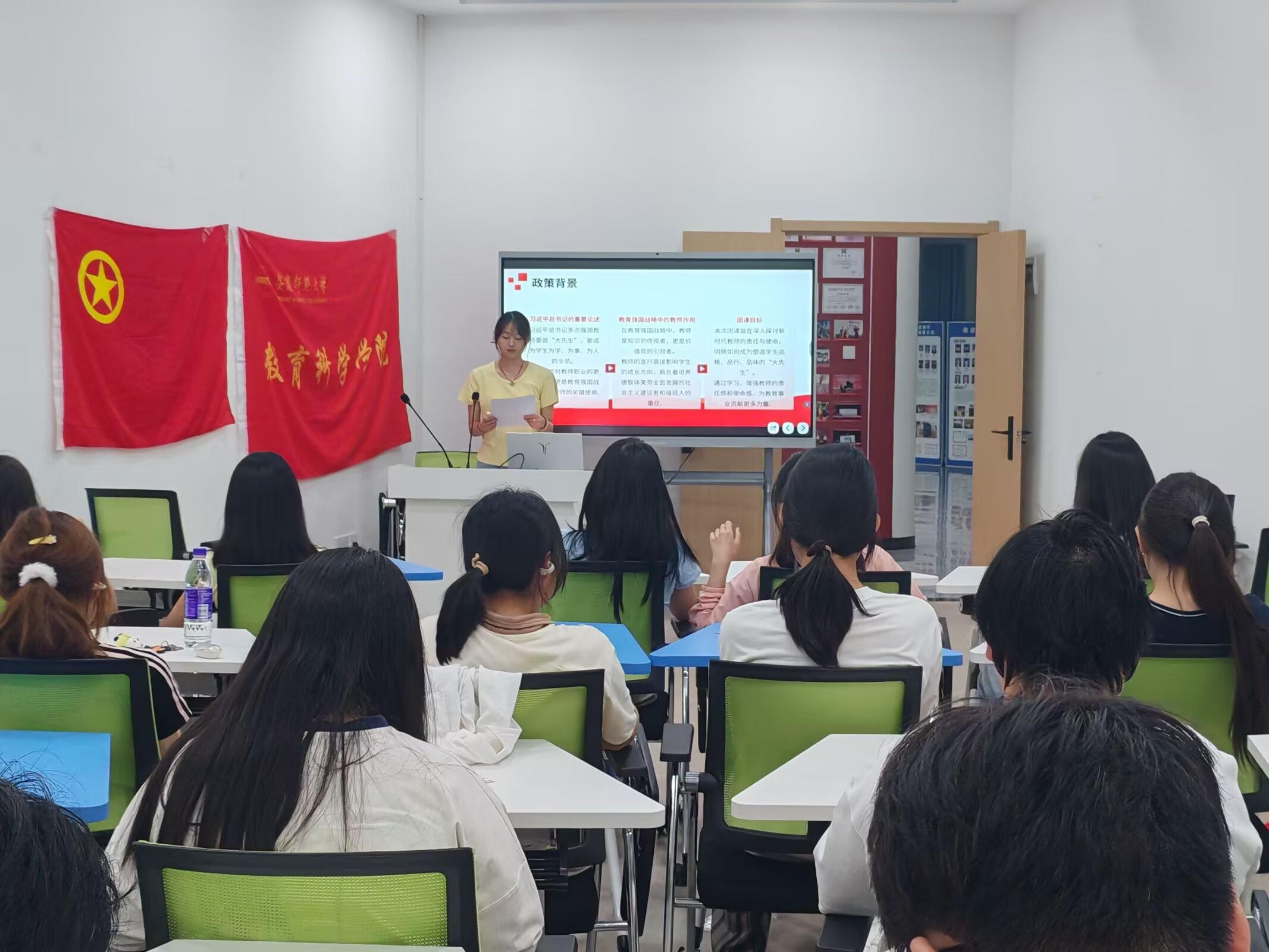 于一站式学生社区美育活动室2举办《论教育》—“教师要成为塑造学生品格品行品味的大先生”主题团课。活动由院团委实践委员刘筱羽主持,98色花堂