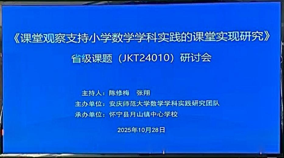 陈修梅副教授、安庆石化三小张翔主任带领小学教育专业25级研究生,赴怀宁县月山镇中心学校开展数学概念学科实践专项活动。本次活动既是研究生专业课程《课堂观察与评价》的实操环节,也是安徽省教育科学研究课题《课堂观察支持小学数学学科实践的课堂实现》的专项研究内容。