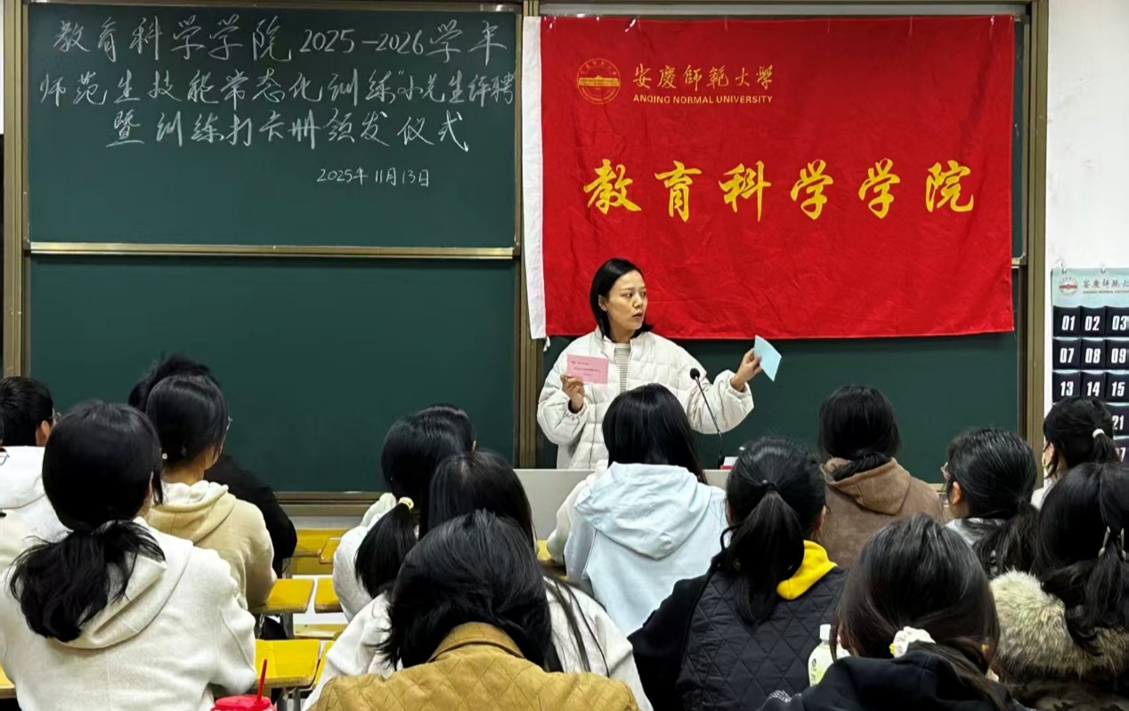 在J104教室开展2025-2026学年师范生技能常态化训练“小先生”评聘暨训练打卡册颁发仪式。院团委副书记姚强诚、新聘任的“小先生”们及2025级新生班委们到场参加。